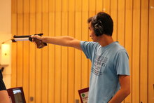 Für Jan Marxsen, von den Böklunder Sportschützen (Junior A/Luftpistole) war die erste Teilnahme bei der Deutschen sehr aufregend. Bei seinem 23. Schuss zeigte die Anzeige links unten eine 1,4 an. Das habe ich nicht geschossen, sagte Jan. Ganz souverän legte er Protest gegen die Wertung ein. Kampfrichter, Betreuer und Trainer schauten mit Camera mit Teleobjektiv und Fernglas, aber es war auf der elektronischen Anzeige kein Schuss zu entdecken. Also war der Protest erfolgreich. Das hat mich aber ganz schön durcheinander gebracht so Jan. Aber trotzdem bewies er danach Nervenstärke, denn er schoss danach eine 10,4. Mit 517 Ringen (64. Platz) beendete er seine ersten DM. Aber damit war das Abenteuer DM für Jan noch nicht zu Ende, denn er wurde auch noch zur Waffennachkotrolle ausgelost.