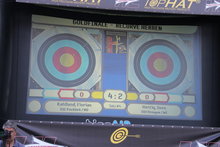 Florian Kahllund, bei dem nach der verpassten Qualifikation für die Olympischen Spiele natürlich etwas die Luft raus zu sein schien, arbeitete sich sicher als Viert-Platzierter in´s Finale. Von Nachlässigkeit oder fehlendem Ehrgeiz war nichts zu erkennen und so verwunderte es auch nicht, dass er sich sicher in´s Halbfinale vorkämpfen konnte. Dort lieferte er sich dann ein sehr spannendes Match mit Cedric Rieger (SSV Karlsbad), den er dann aber mit einer blitzsauberen "10" im Stechen besiegen konnte und damit um die Goldmedaille kämpfen sollte. Sein Gegner wurde in der Halbfinalbegegnung zwischen dem Olympiateilnehmer Florian Floto (SV Querum) und Sven Herzig (SV Ehingen) ermittelt. auch dieses Match musste durch ein Stechen entschieden werden. Sven Herzig behielt die Nerven und schoss diesen entscheidenden Pfeil näher an´s Zentrum als Florian Floto und stand damit als Gegner für Florian Kahllund fest. In dem eigens für die Medaillenfinals aufgebauten Arena konnte sich Florian dann seine ganze Wettkampferfahrung ausspielen, besiegte Sven mit 6:2 und freute sich sehr über seinen ersten Deutschen Meistertitel in der Klasse Herren Recurve.