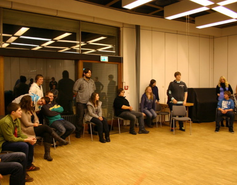 Voller Erwartung nahm die Gruppe der 36 Jugendlichen die einleitenden Informationen von Christin Mächold zur Kenntnis. Daraus entwickelte sich sogleich eine angeregte Kommunikation untereinander. Nach einem Kennlernspiel, ging die Referentin auf das eigentliche Thema des Abends ein und stellte den Jugendlichen vor, was an diesem Abend gemacht werden sollte. Die Jugendlichen fanden sich in Projektgruppen ein, deren Aufgabe es war, sich ein Spiel auszudenken.