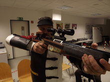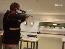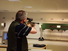 Lfd. Scheibe, die bis 2008 Olympisch war, wird mit Zielfernrohr auf 10 m mit dem Luftgewehr und 50 m mit dem Kleinkaliber geschossen. Im Zielfernrohr sind im Visierbereich zwei Stachel, mit dem der Schütze den Haltepunkt anvisiert.