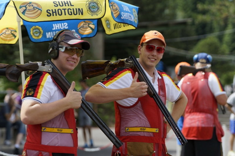 Wie schon bei dem Trap-Wettbewerb der Damen boten auch die Junioren einen hochklassigen Wettkampf. Nur zwei Treffer trennten die Junioren von Platz eins (50 Treffer) bis Platz acht (48 Treffer) nach dem ersten Tag. Vincent Haaga beendete den ersten Wettkampftag bei idealen Wetterbedingungen als sechster, war damit auf Kurs für das Finalschießen.