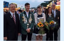Der Deutsche Schützenbund machte es spannend. Nach Wettkampfende gegen 13 Uhr hieß es warten, erst um 20 Uhr mussten die zwanzig Landesvertreter auf die Bühne im großen Festzelt des Köln-Deutzer Schützenfestes. Es folgten ausführliche Vorstellungen, dann endlich wurde das Geheimnis zu Platz drei gelüftet. Kevin Reinhard aus Hessen hatte einen Teiler 13,4, Anja Mußmann aus Niedersachsen 11,4 und dann mit großem Beifall bedacht, folgte die 8,6 von Lena Breuer. DSB-Präsident Heinz-Helmut Fischer und Vizepräsident Stefan Rinke ließen sich nicht nehmen, der strahlenden Stockelsdorferin die Königskette umzulegen.