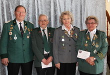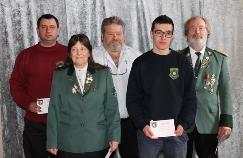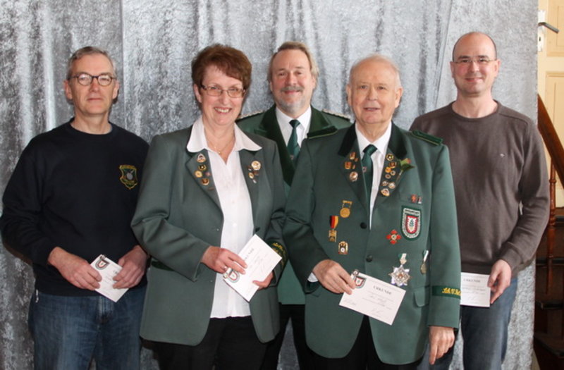 Folgende Schützinnen und Schützen wurden geehrt. Dieter Wenskat (Verbandsnadel KSchV Gold und Goldene Ehrennadel NDSB), Inge Lapp (Verbandsnadel KSchV Gold), Bärbel Glismann (Goldene Verdienstnadel DSB), Harald Timm (Goldene Verdienstnadel DSB), Jens Büchner (Goldene Verdienstnadel DSB), Hans-Joachim Dreffein (Verbandsnadel KSchV Silber), Rita Schwede ( Verbandsnadel KSchV Gold).