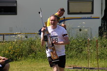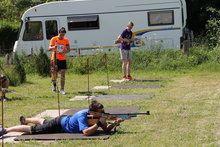 Da es am Nachmittag beim Massenstart immer heißer wurde, bekamen die Schützen nach dem sie vom Schießstand kamen mit einem Schlauch eine kühle erfrischende Abkühlung zur nächsten Laufrunde.