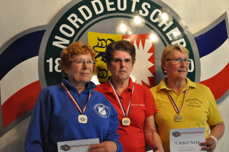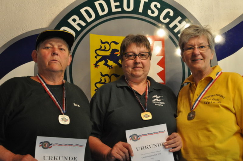 Bei den weiblichen Seniorinnen C gab es hinter der Landesmeisterin Christel Gülck einen Vierkampf. Denn Roswitha Geißler (Bösdorf), Elfriede Rölke (Eiche Idstedt), Ingrid Thiemann (Albersdorf) und Gilda Schöttle (Büsum) hatten 295 Ringe geschossen. Also mussten wieder die letzten Serien bzw. Innenzehner entscheiden. Und da hatte Roswitha Geißler mit 22 Innenzehnern die Nase vor Elfriede Rölke, die auf 21 Innenzehner kam. Platz vier und fünf gingen an Ingrid Thiemann und Gilda Schöttle.