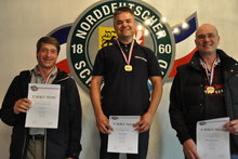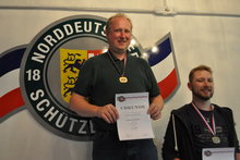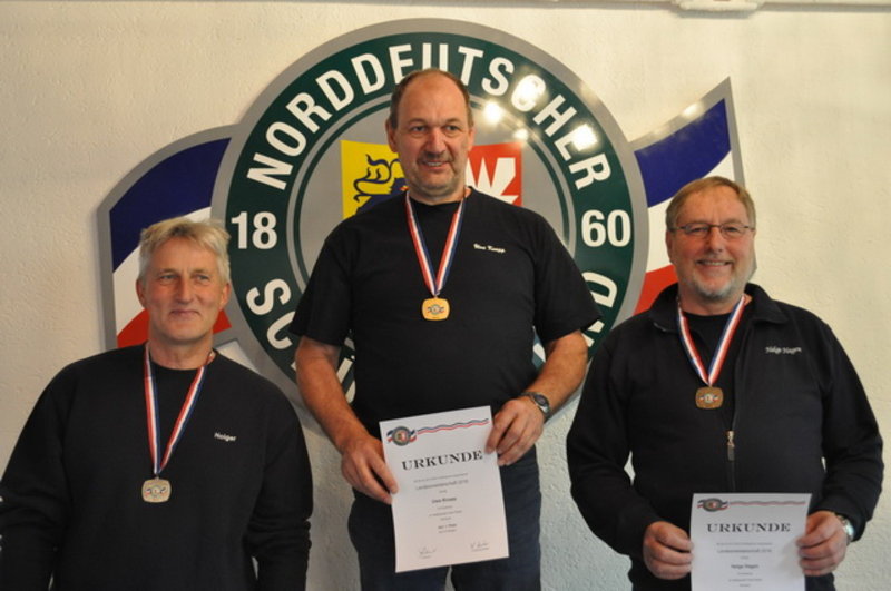Der Einzeltitel in der Altersklasse ging an den Rendsburger Helge Hagen mit herausragenden 550 Ringen vor seinem Vereinskameraden Uwe Hofmann (545) und dem dritten Rendsburger Sven Jürgensen, der immerhin noch 539 Treffer erzielte. Damit sollten die drei ihre Startplätze in München sicher in der Tasche haben, lag das Limit im vergangenen Jahr bei 527 Ringen.