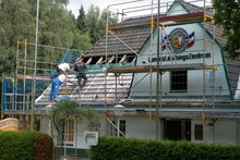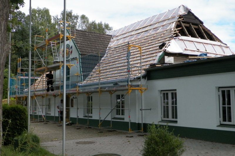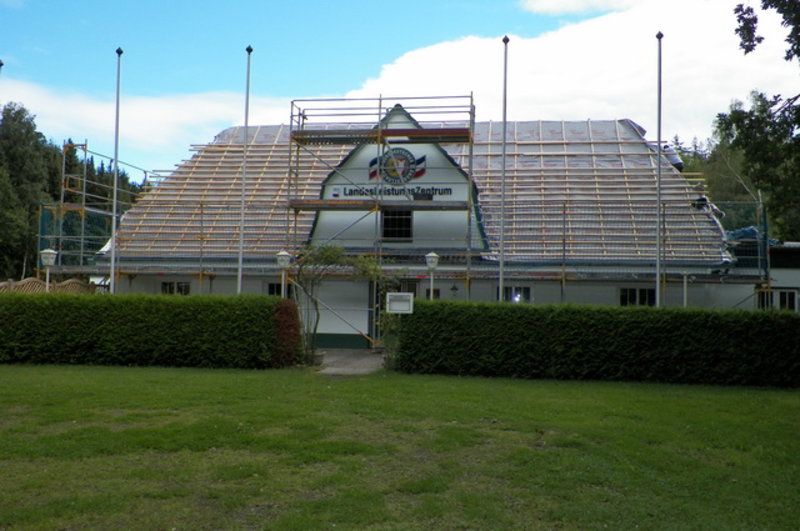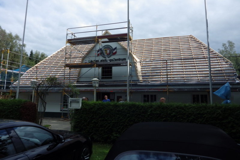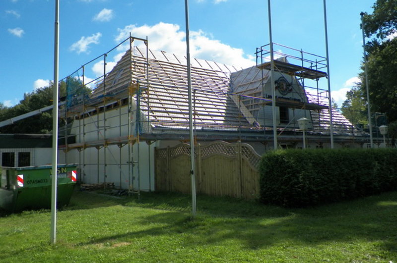 Nach der allgemeinen Sanierung und der Instandsetzung des Bogenplatzes haben wir mit der Dacherneuerung des Daches der Schützenhalle begonnen. Diese Dacherneuerung wird ca. Mitte September abgeschlossen sein.