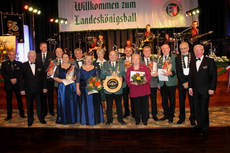 Wieder einmal war das Maritim in Travemünde fest in Schützenhand. Rund 800 Schützinnen, Schützen und Ehrengäste feierten den 19. Landeskönigsball. Unter den Klängen des Party Symphonie Orchester und unter dem Beifall der Ballbesucher marschierten über 115 amtierende Kreis- und Vereinsmajestäten mit dem Landesbanner und dem Landeskönig Werner Petersen, der Bundesjugendkönigin Lena Breuer und dem Präsidenten Peter Kröhnert an der Spitze in den festlich geschmückten großen Saal ein. Alle anwesenden Majestäten bekamen einen Königserinnerungsorden und Marzipantaler überreicht.