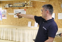 Uwe Knapp machte seine Sache etwas besser als am Vormittag und konnte mit stabilen, sich steigernden Serien von 90/90/92/94 dann 366 Ringe erreichen und den ersten Punkt des PCR gegen Thomas Lüken mit 359 Ringen machen.