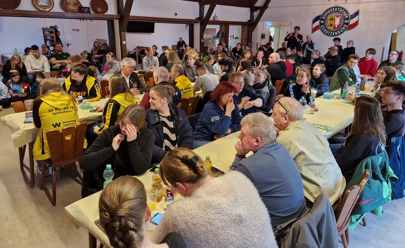 Präsident Ekkehard Merbeth überbrachte die Grüße des Präsidiums und begrüßte vor allem die Jugendlichen, denn ihr seid heute hier die Hauptakteure. Der Präsident war im letzten Jahr bei den Deutschen Meisterschaften in München und war sehr angetan von der Größe der Schießanlage. Wie müsst ihr erst überwältigt gewesen sein, wenn ihr das erste Mal dort startet. „Auch wenn ihr sicherlich aufgeregt wart, habt ihr hoch konzentriert euren Wettkampf geschossen; das ist sehr bewundernswert“, so der Präsident.